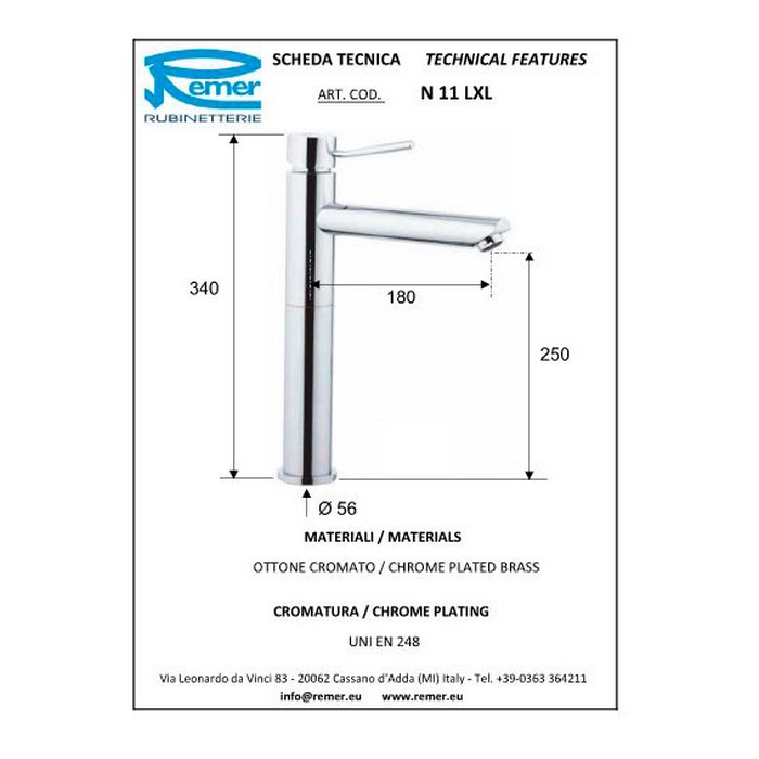 Смеситель для раковины Remer Minimal N11LXL.