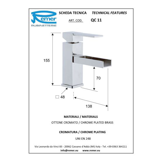 Смеситель для раковины Remer Qubica Cascata QC11.