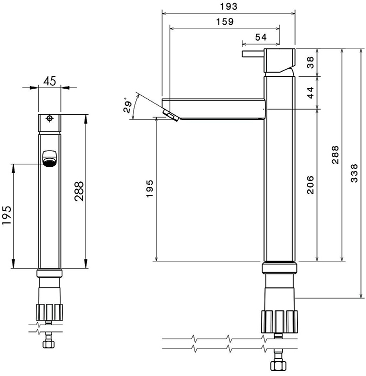 Высота излива, мм
