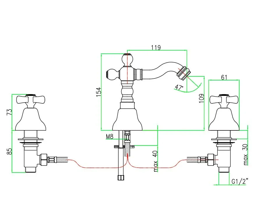 - Управление: двухвентильное, керамическая кран-букса.
