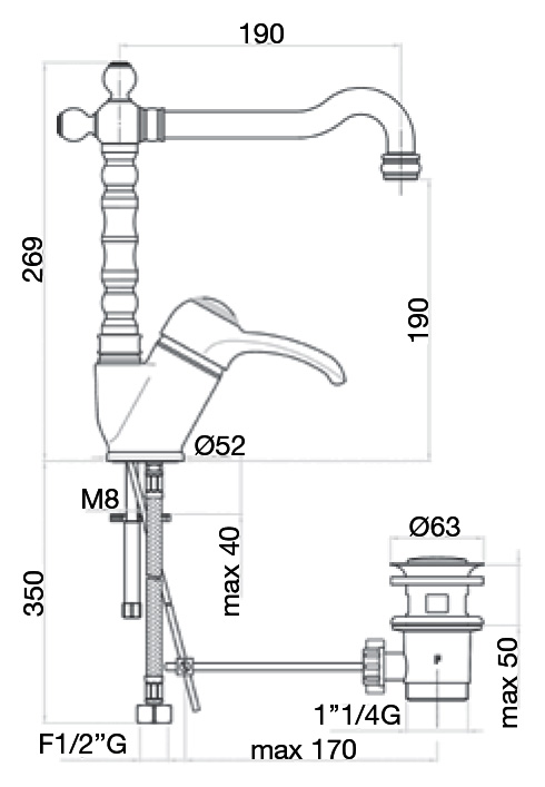 - Управление донным клапаном: рычаг на корпусе смесителя.