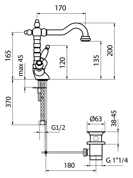- Донный клапан G1 1/4.