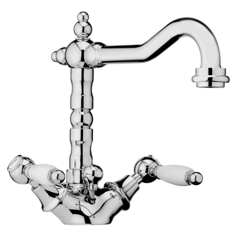 Смеситель для раковины Webert Dorian DO700302015 двухвентильный, с ручками стилизованными под керамику, устанавливаемый в одно отверстие, с донным клапаном.