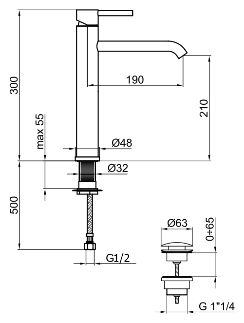 Высокий смеситель для раковины и раковины-чаши Webert Elio EL830402015 однорычажный, устанавливаемый в одно отверстие, с донным клапаном.