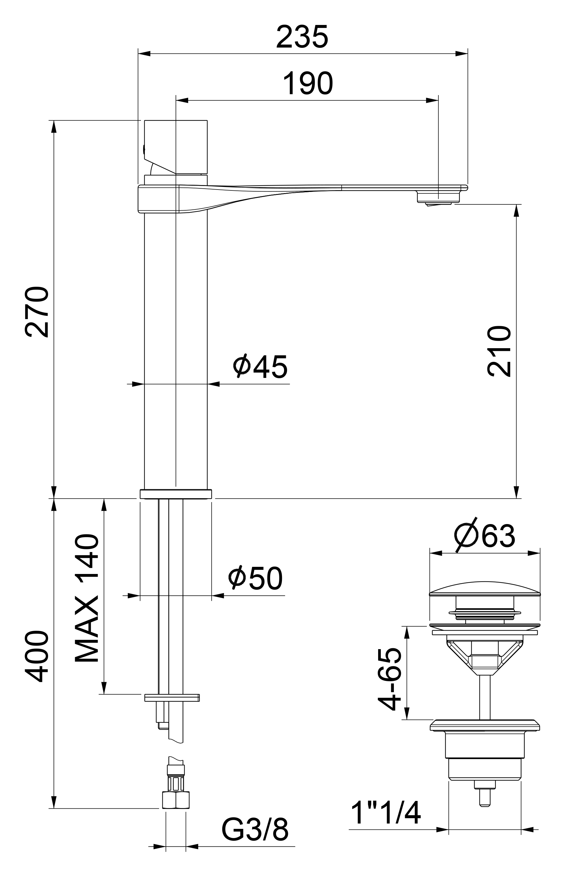 - Управление донным клапаном: с помощью нажатия на пробку.