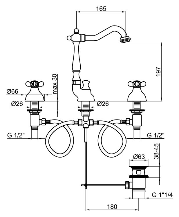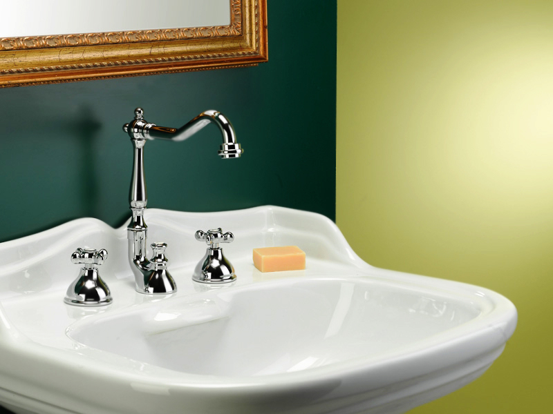 Смеситель для раковины Webert Ottocento OT750202015 двухвентильный, устанавливаемый в три отверстия, с донным клапаном.