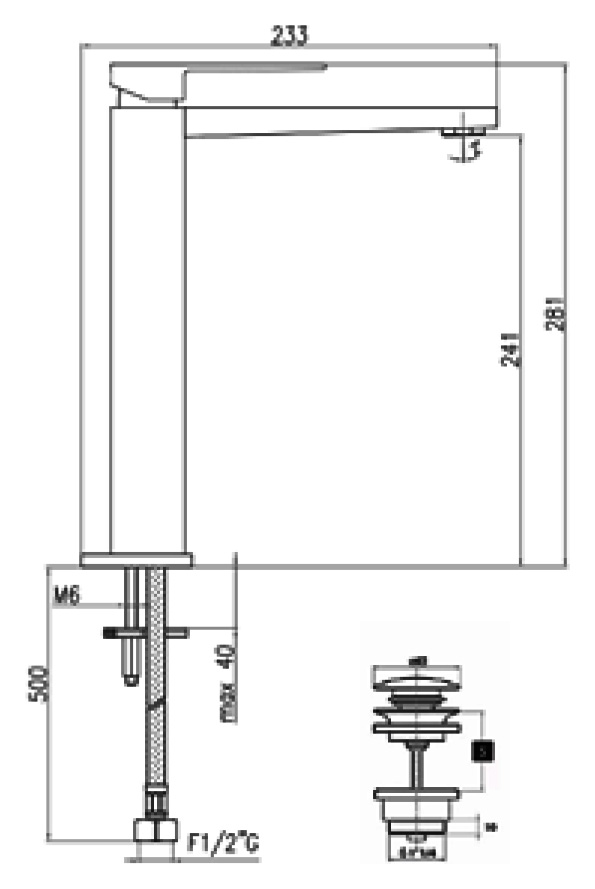 - Излив: фиксированный.