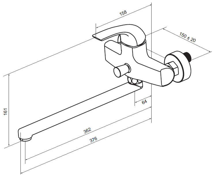 - Поворотный излив длиной 30 см может использоваться для подачи воды в ванну или в раковину.