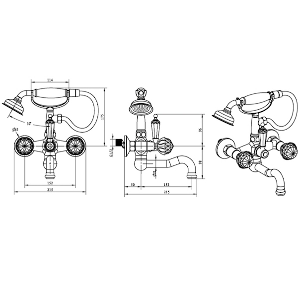 Смеситель для ванны с душем Boheme Brillante Presente 353. Такой смеситель будет служить верным помощником в обиходе, неприхотлив в уходе. Изящный дизайн будет отлично гармонировать в интерьере ванной комнаты.Характеристики: