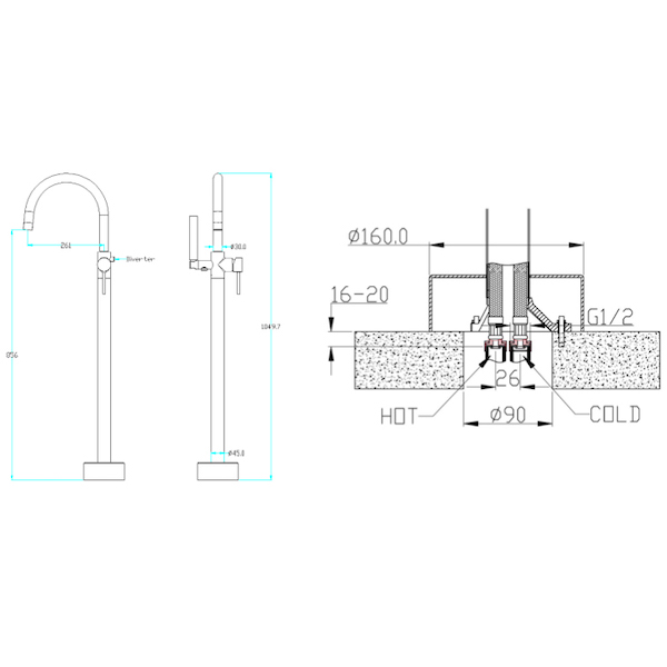 - Смеситель, лейка, шланг, гибкая подводка G1/2, крепежный комплект