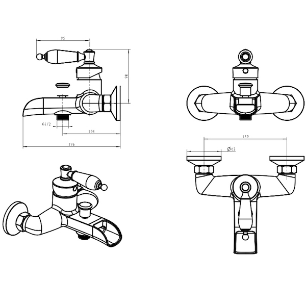 Смеситель для ванны с душем Boheme Vogue 213 с каскадным изливом. Смеситель однорычажный монтируется на стену. Такой смеситель будет служить верным помощником в обиходе, неприхотлив в уходе. Изящный дизайн будет отлично гармонировать в интерьере ванной комнаты.Характеристики: