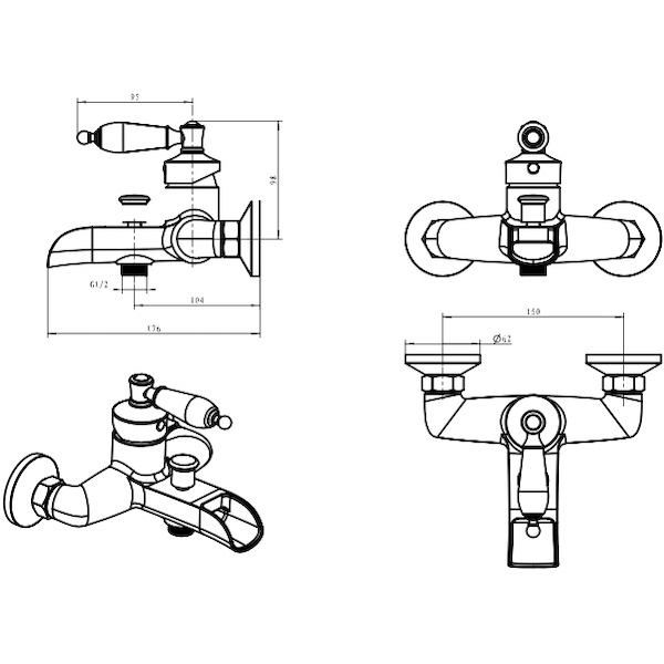 - Смеситель, гибкая подводка G1/2, крепежный комплект