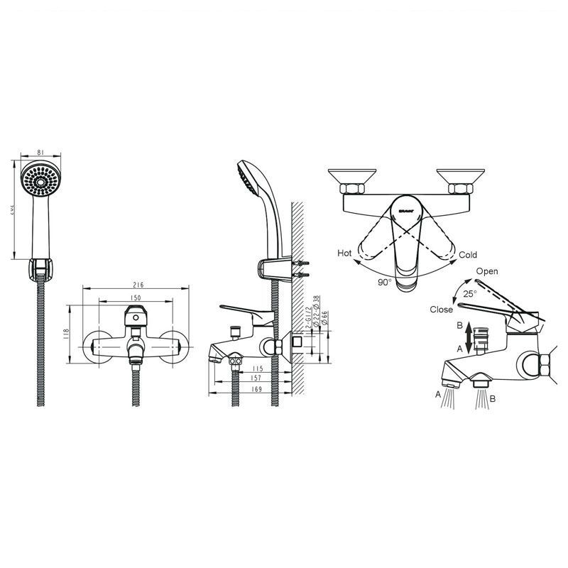 В комплекте поставки: cмеситель, душевая лейка, гибкий шланг.