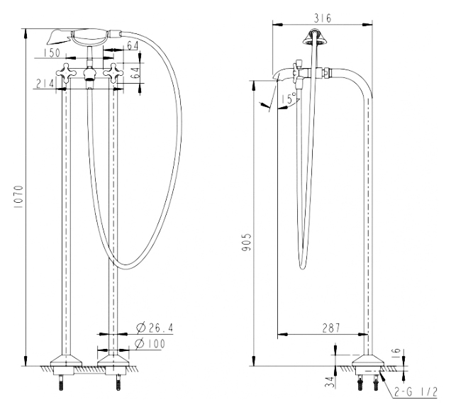 Смеситель для ванны Bravat Summer Rain F677111C-B напольный. Корпус латунь. Ручка цинк. Керамический картридж Sedal 35 мм. Керамический переключатель. Аэратор Neoperl. Поток воды: излив 15 л/мин, душ 8 л/мин при давлении 0.3 MPa.