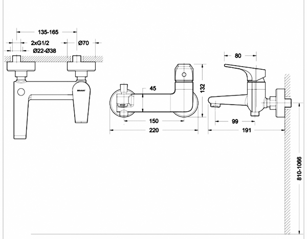 Смеситель для ванны Bravat Vega F6119177CP-01. Корпус латунь. Ручка цинк. Керамический картридж Keroxl 35 мм. Кнопочный переключатель. Аэратор Neoperl. Поток воды: излив 20 л/мин, душ 12 л/мин при давлении 0.3 MPa.