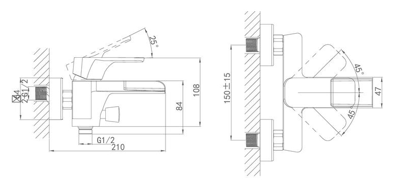 Однорычажный настенный смеситель для ванны D&K Berlin Freie DA1433501 с каскадным изливом, в комплекте с душевым гарнитуром. Бриллиантовый блеск. Плавное управление. Мгновенная остановка потока. Регулировка расхода. Высокотехнологичное производство. Легкая и быстрая установка.