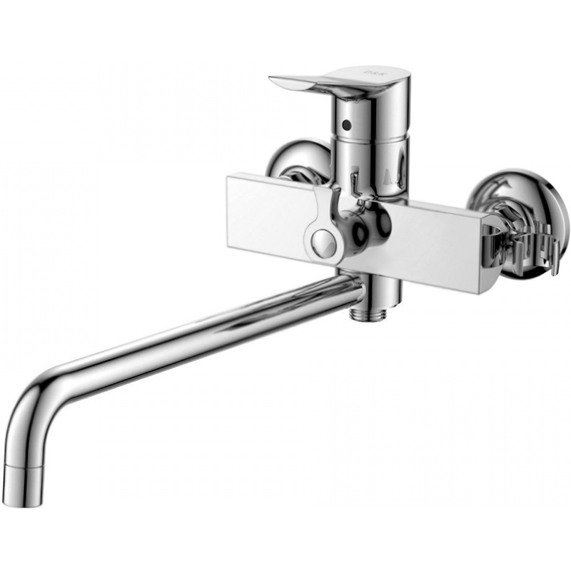 Однорычажный настенный смеситель для ванны D&K Rhein Mosel DA1263341 универсальный, с поворотным длинным изливом, в комплекте с душевым гарнитуром. Бриллиантовый блеск. Плавное управление. Мгновенная остановка потока. Регулировка расхода. Высокотехнологичное производство. Легкая и быстрая установка.