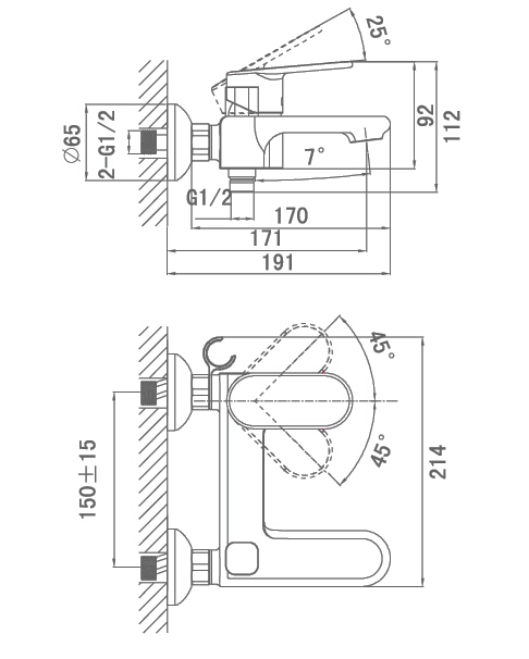 - Душевой шланг 150см. Материал шланга: внутренний - каучук EPDM, оплетка – нержавеющая сталь.