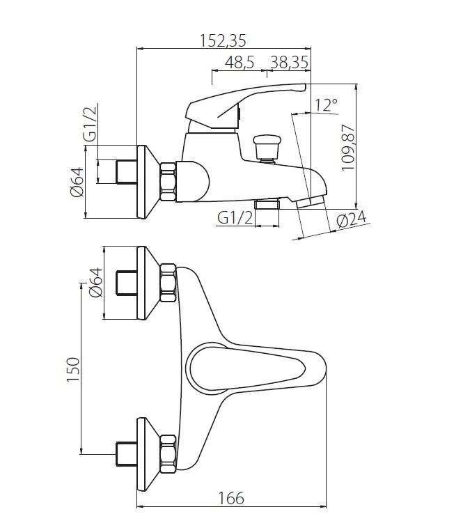 Смеситель для ванны и душа Damixa H2O Capital Start HFKS10000 в цвете хром.