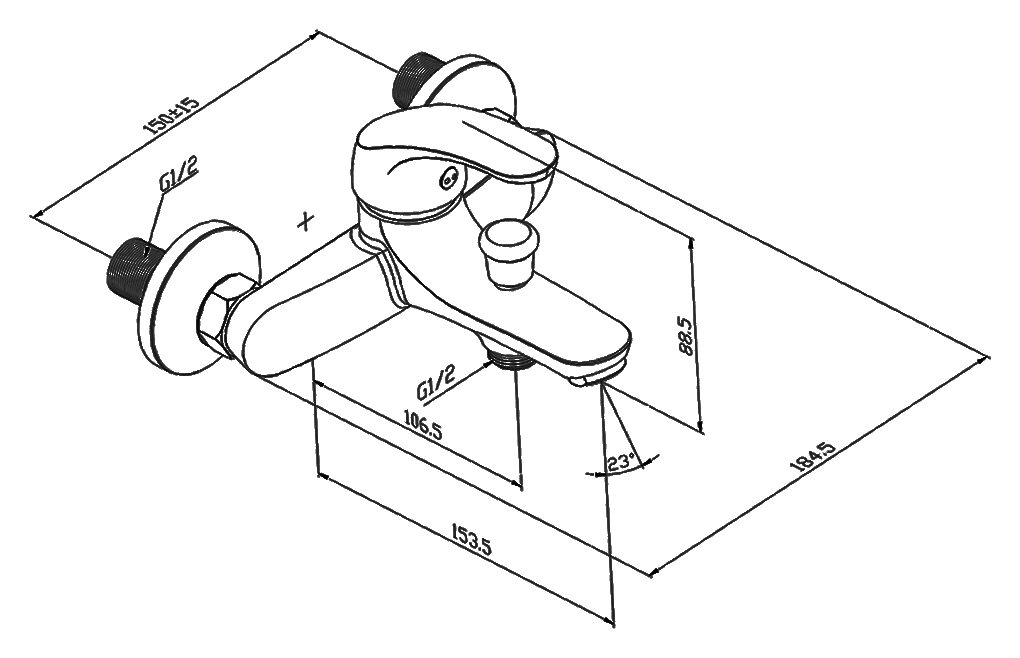 Настенный смеситель для ванны Damixa Palace One 411000000 однорычажный, с аэратором, монтируемый в два отверстия.