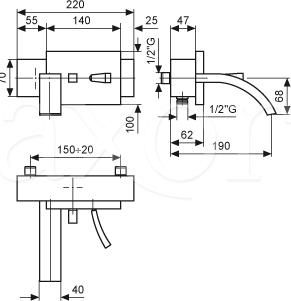 Смеситель Emmevi Antef 42001 для ванной. Однорычажный настенный. Цвет хром.