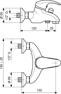 Смеситель Emmevi Luxor 7001R для ванной. Однорычажный, настенный. Цвет хром.