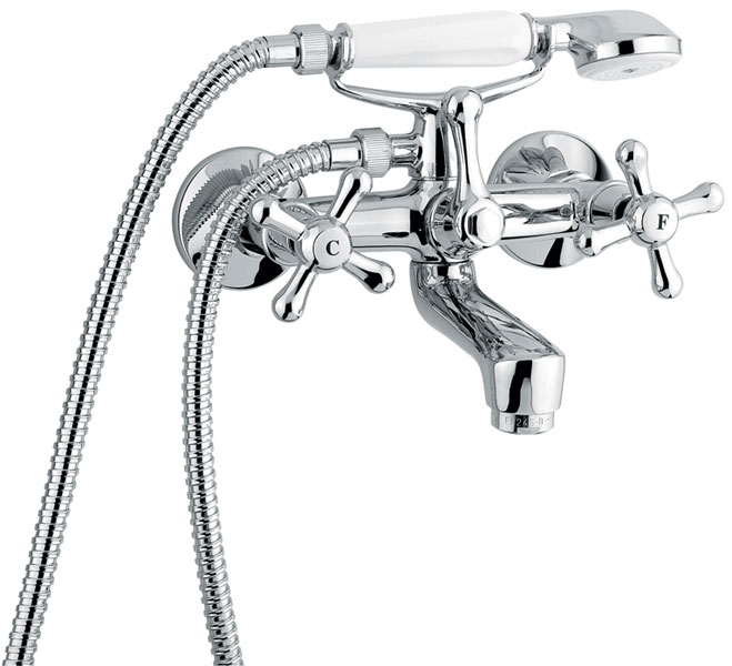 Смеситель Emmevi Stella 17011 для ванной. Двухвентильный, с ручным душем. Цвет хром.