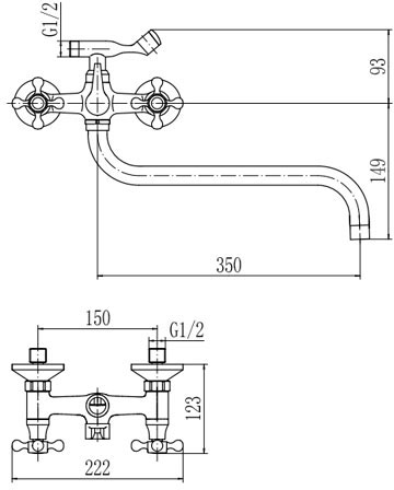 Смеситель для ванны Fashun A2619-2 универсальный Хром