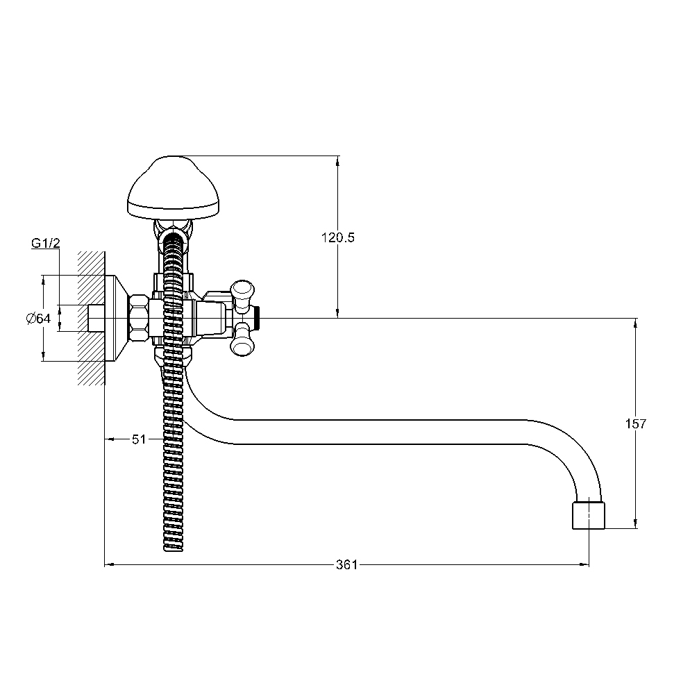 - Душевой шланг в металлической оплетке длиной 1,5 м.