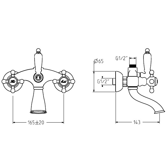 Смеситель Gattoni Vivaldi 12006 для ванны/душа, двухрукояточный, цвет: хром.