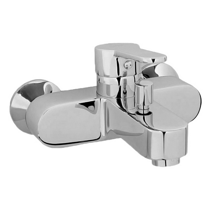 Смеситель в цвете хром, для установки на стену. Современный дизайн конструкции подойдет для абсолютно любой ванной комнаты, лаконично впишется в интерьер. Качественные материалы, которые используются в производстве смесителей, обеспечивают исправную работу на протяжении всего срока службы. Поверхность смесителя приятна на ощупь, такой эффект достигается тщательной полировкой всего корпуса.