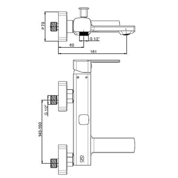 Настенный смеситель для ванны GPD Pedro MBB160 - превосходно дополнит интерьер любой ванной комнаты в современном стиле.
