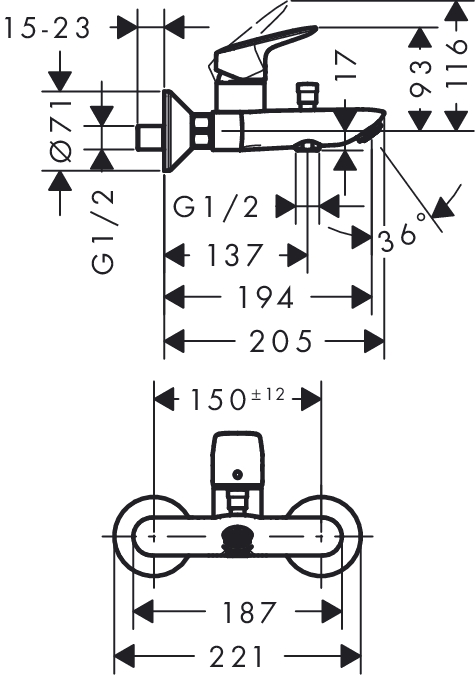 Смеситель для ванны и душа Hansgrohe Logis 71400000.