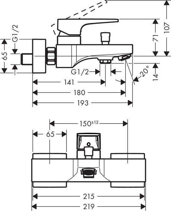 Смеситель для ванны и душа Hansgrohe Metropol 74540000.