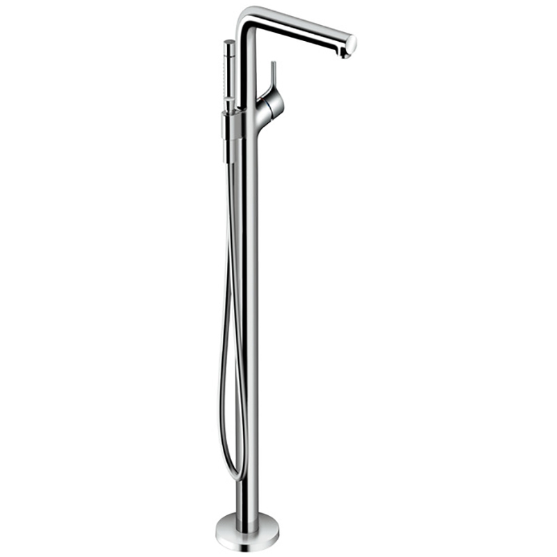 Напольный смеситель для ванны Hansgrohe Talis S 72412000 - однорычажный, с регулируемым аэратором, подвешиваемый на держатель в стойке. Стойка монтируется к полу посредством специальных болтов. Имеет технологию защиты от известкового налета QuickClean. Технология Air Power позволяет использовать воду с пользой для тела, благодаря смешиванию струй воды с воздухом. Также достигается существенная экономия расхода воды.