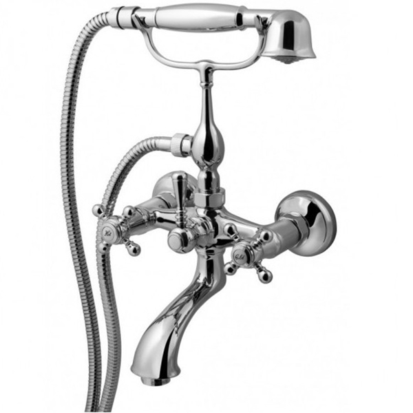 Смеситель для ванны AM.PM 5 O Clock F2510000 двухзахватный в классическом викторианском стиле. Цвет хром. В комплекте поставки: смеситель, шланг, лейка, держатель лейки.