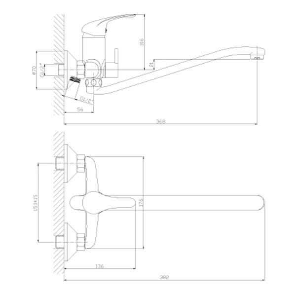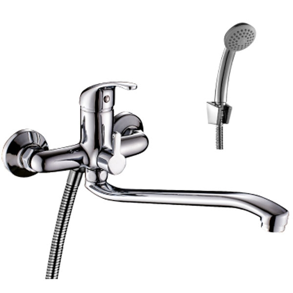 Универсальный одноручный смеситель для ванны и душа Rossinka A35-34 с S-образным изливом 35 см.