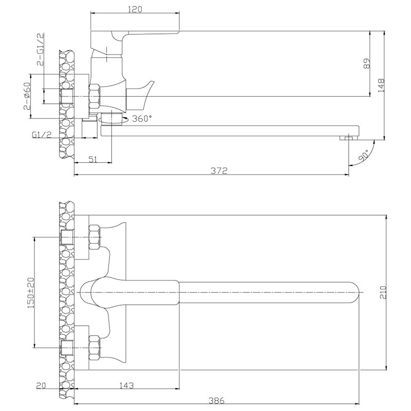 Смеситель для ванны и душа Rossinka RS35-32PC универсальный одноручный с плоским изливом 35 см.