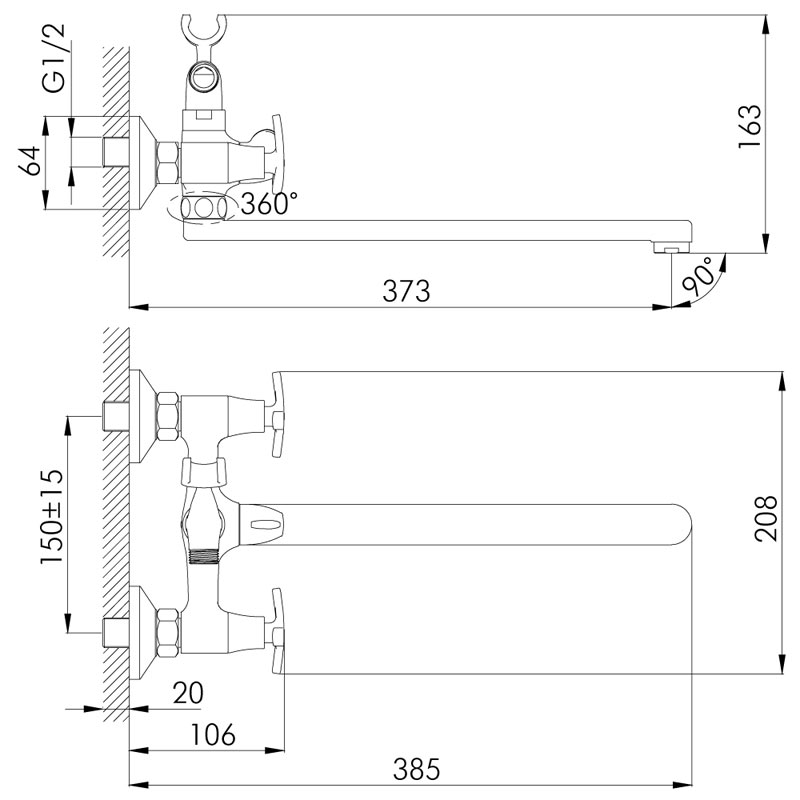 Смеситель Rossinka RS40-84 для ванны универсальный с плоским изливом 35 см.