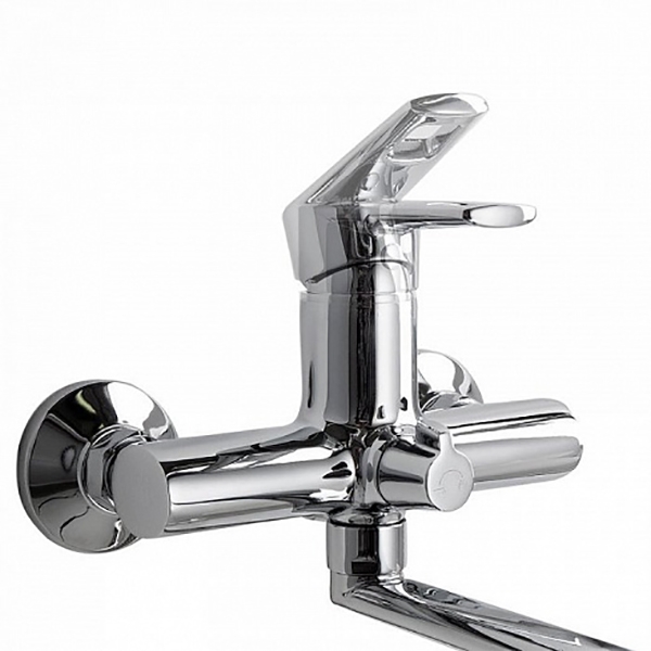 Универсальный смеситель для ванны и душа Iddis Runo RUNSBL2i10WA с длинным изливом.
