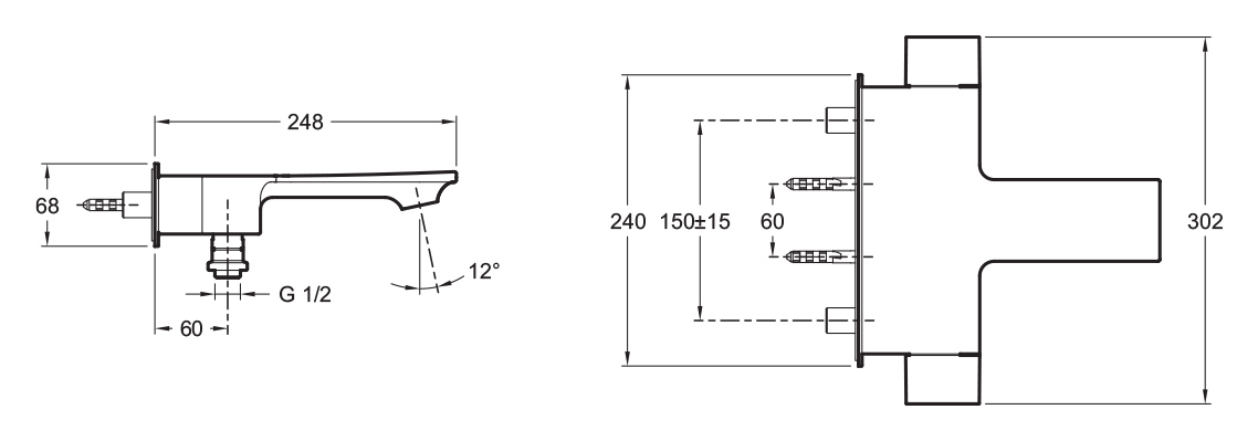 - Настенный смеситель для ванны Jacob Delafon Stance E9100-CP двухвентильный, с аэратором, монтируемый в два отверстия.