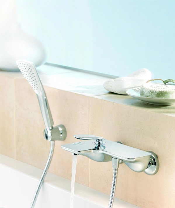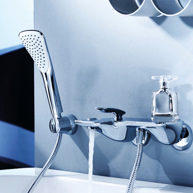 - Широкая поверхность смесителя может служить полочкой для косметических средств.