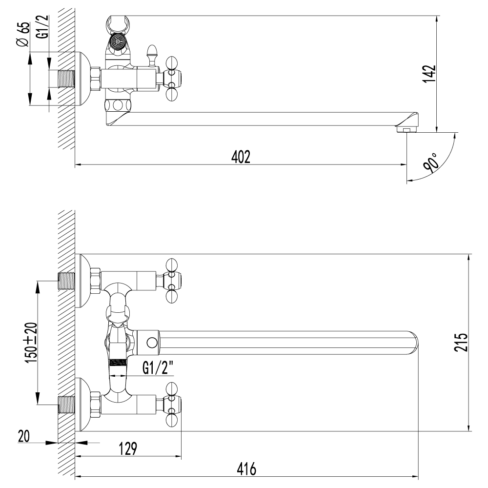 Универсальный двухвентильный смеситель для ванны Lemark Vista LM7651C.