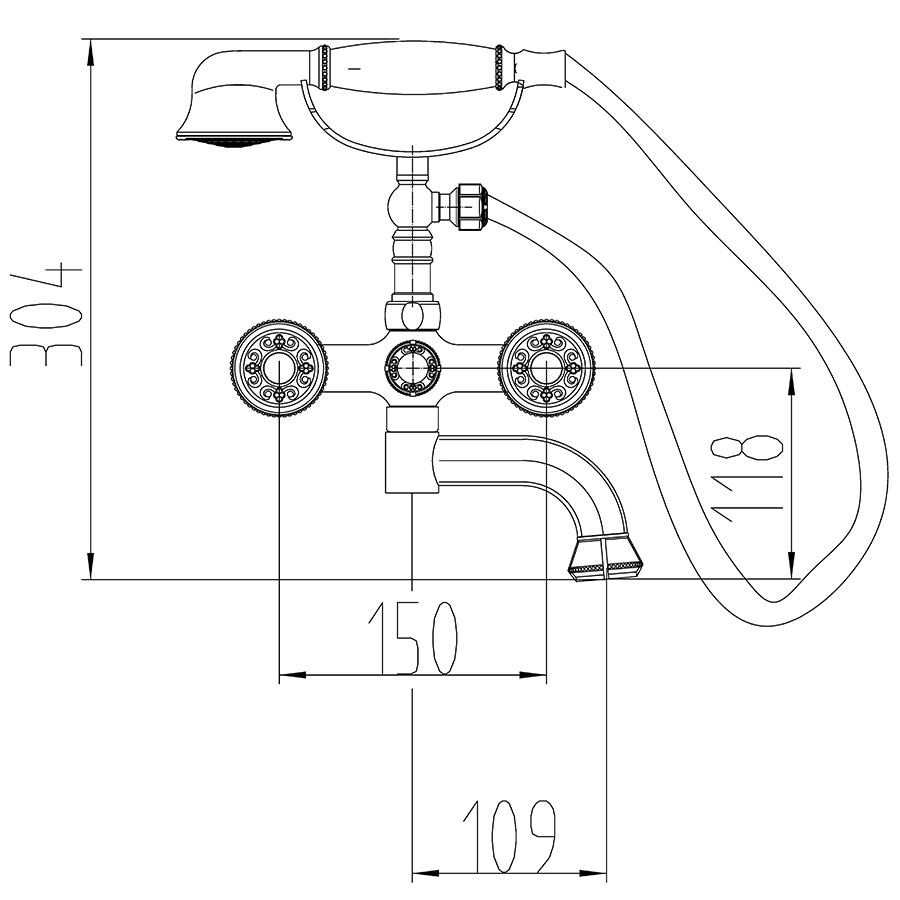 Смеситель для ванны Milacio Almeria MC.301.BBR - идеально подходит для ванной комнаты, выполненной в ретро стиле.