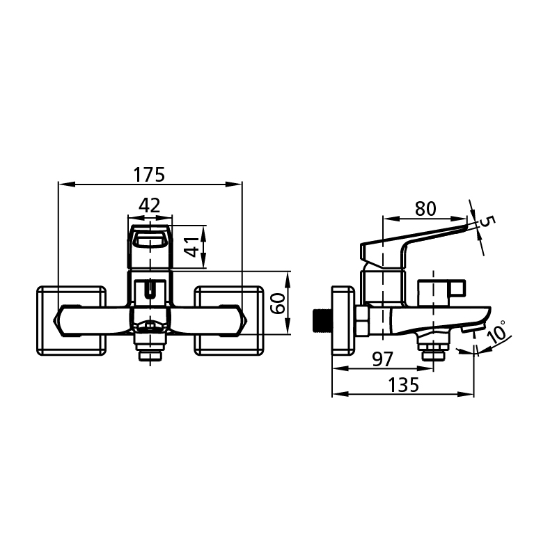 В комплекте поставки: смеситель, душевая лейка с держателем, душевой шланг.