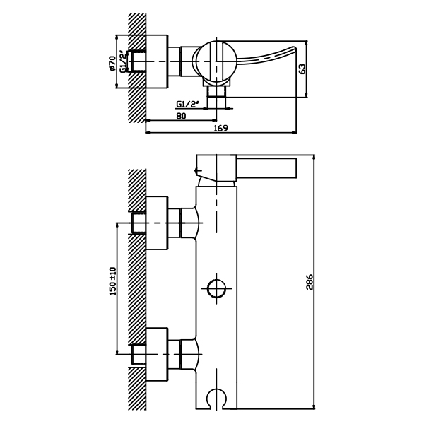 - Стандарт подводки: 1/2 дюйма.