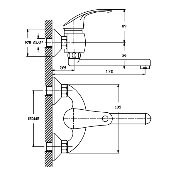 - Стандарт подводки: 1/2 дюйма.