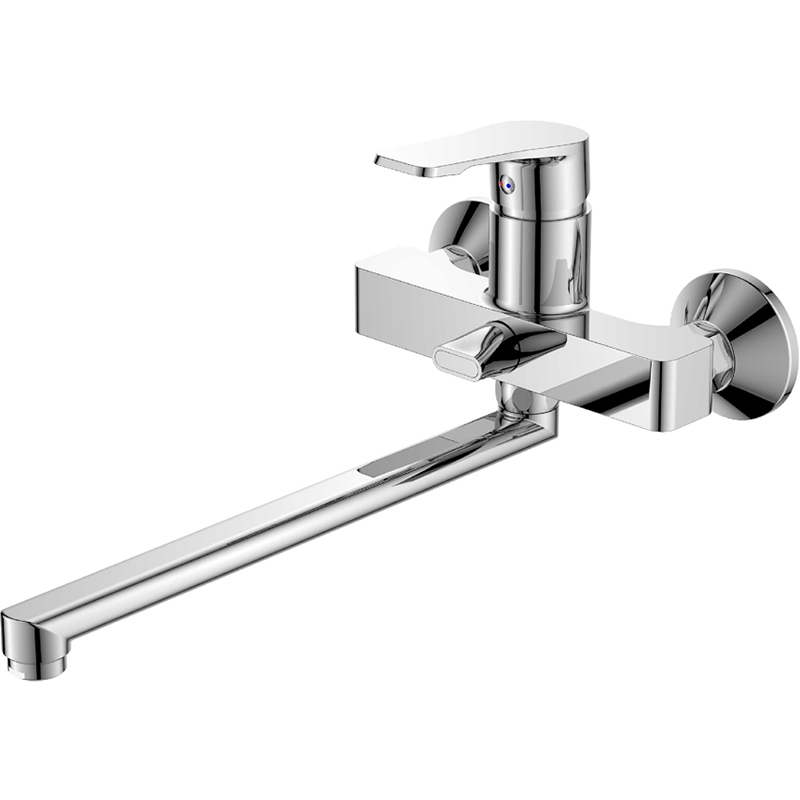 Orange Berti M17-211cr - смеситель для ванны с длиным изливом, однорычажный. Оригинальный и нестандартный дизайн лаконично впишет эту модель в любой современный интерьер ванной комнаты. Функциональность на высоте благодаря продуманной до мелочей конструкции: керамический картридж размером в 35 мм обладает свойством не откладывать отложения из ржавчины и извести. длиный поворотный излив позволяет использовать смеситель в компактных ванных комнатах, где раковина расположена рядом с ванной.