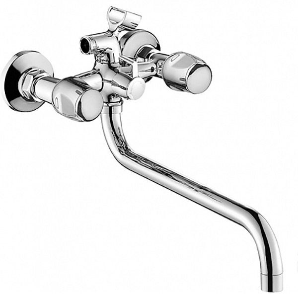 Orange Classic S M75-221cr двухзахватный смеситель для ванны и душа с поворотным круглым, литым изливом изливом 350 мм + керамический дивертор с аксессуарами, лейка 1 функция.