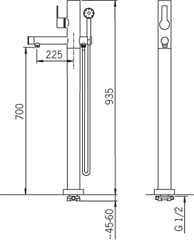 Смеситель для ванны Oras Alessi One 8550, однорычажный. Переключатель, душевой шланг и ручной душ, расход воды 19,2 л/мин.